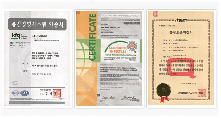 / Oeko-Tex Quality System Certification through KFQ. (Seoul
